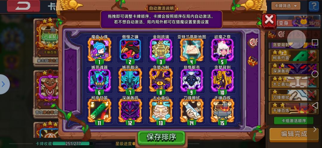 卡牌这样带,魔印要求金色原罪之源,绝世罪恶恩赐(金色也行,队友都带兔子),宠物用原罪宠物,地图选攻速,道具捡攻速和减少蓄力时间、血盾,队友要求瑟瑟或宠物兔子,称号要铁公鸡(第一关太缺缺魂,第一个 BOSS 要点出来第 6 张卡,带上铁公鸡基本必出),变身苍蝇(长按)~三叉戟(连点)~羊(长按)~最后一个(连点)基本都能带过,留着第 6 张卡不点, 第一关 BOSS 时再点,害怕牛牛翻车喽,可以留一