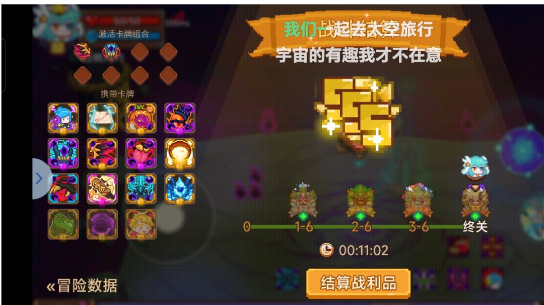 没录视频了,将之前的卡组改良了一下,因为也是第三次用这个套路,还有活动玉兔需要答题,操作和宝物选择也比较生疏,可能速度还能提提,卡牌均为3星,萌新勿轻易尝试 宝物选择(按优先级排序) 1.戒指移速 这套是真缺移速啊,尤其开了惰殆躯壳之后,没移速跟乌龟爬一样[表情_捂脸哭] 2.血盾 3.武器暴击爆伤,优先武器暴击 4.cd(因为前期基本很难高cd,而后期主要靠贪婪蓄力打伤害,技能能续上贪婪就行了,