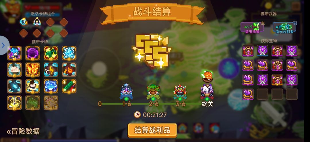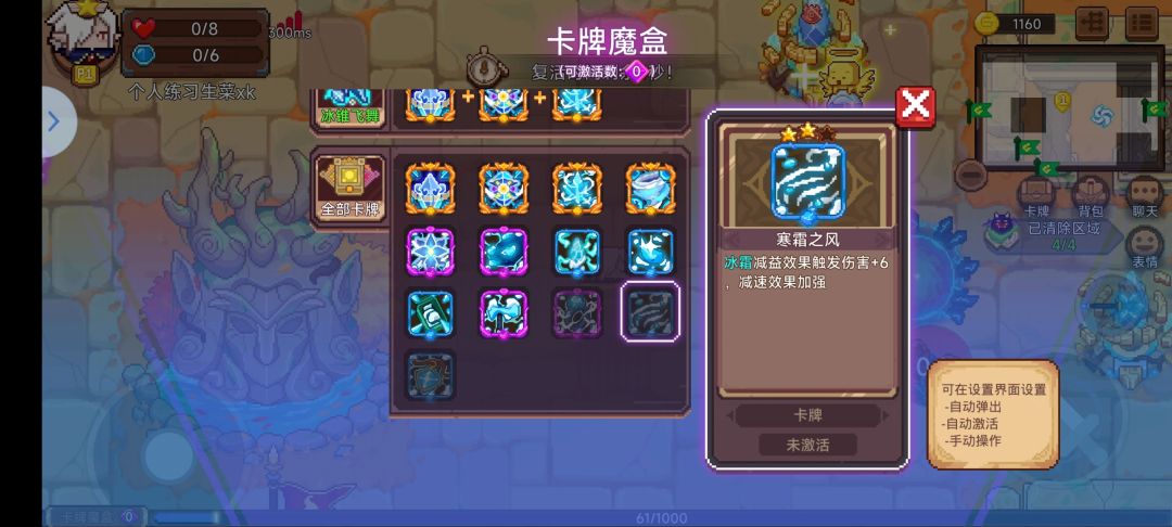 急冻之斧(我的是1星)放在2号位,直接避免没有技能等死的情况。冰霜凝结放在4号位,打boss前攒够100层冰霜之力,感觉这张卡是冰卡组的核心。龙枪是在3图找的,之前一直是初始武器打的
