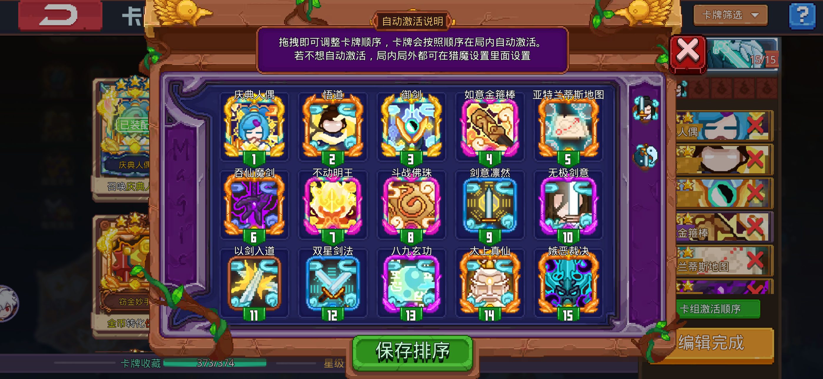第一关:开局后地图的四个角落会刷新出怪,把怪打死会掉落史诗石板任意选择史诗卡牌以及在地图的右上角会有一个类似于悬浮的灯台,击碎后会掉落传说石板可选择传说卡牌困难图1-1里的传说石板能随机出任何史诗以及传说种类的卡牌,想要极限赌卡的朋友不要错过与观星长老-真玄对话,对话中的无妨是随机灵根,灵药修复则是可选择灵根(当然也是概率选择)然后是与占星圣子-太清切磋(左上角那个白毛)将其击败之后会给