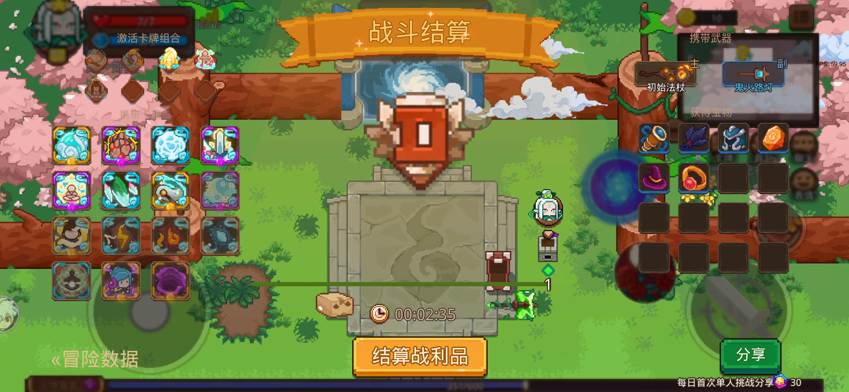 第一关:开局后地图的四个角落会刷新出怪,把怪打死会掉落史诗石板任意选择史诗卡牌以及在地图的右上角会有一个类似于悬浮的灯台,击碎后会掉落传说石板可选择传说卡牌困难图1-1里的传说石板能随机出任何史诗以及传说种类的卡牌,想要极限赌卡的朋友不要错过与观星长老-真玄对话,对话中的无妨是随机灵根,灵药修复则是可选择灵根(当然也是概率选择)然后是与占星圣子-太清切磋(左上角那个白毛)将其击败之后会给