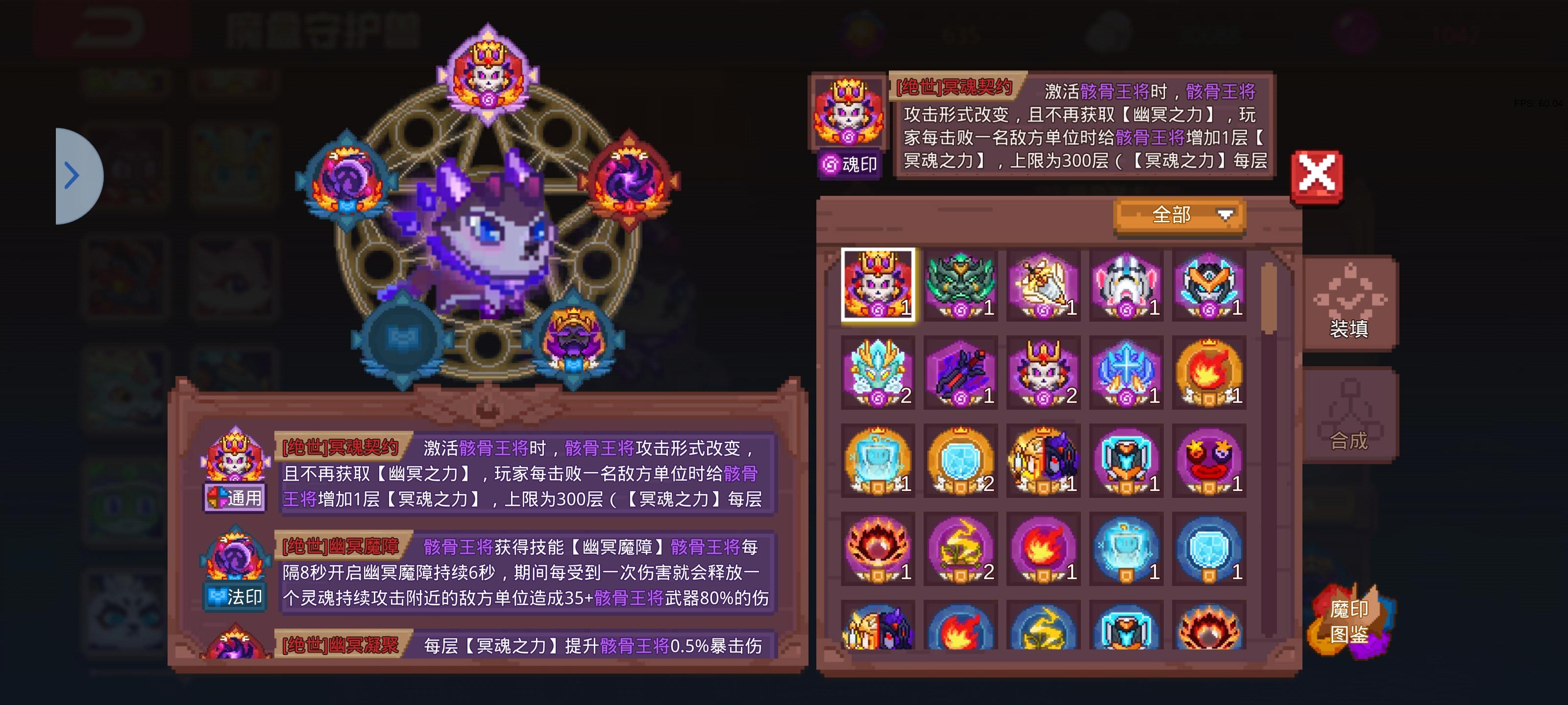 打卡第四十二天,今天出了御剑印前两天出的骨王。刚开始玩的时候抽的机甲然后一直用机甲挖矿,期间基本大部分银币跟所有的莹石都用来抽印了然后就一直买印赌印,中间赌出了俩红穿合出来一个,由于开始抽的机甲和银币用来买印,现在骨王和仙的卡星级都很低,藏品也没怎么升,求大佬指导一下后续发展#见习猎魔团 #我在见习猎魔团挖矿
