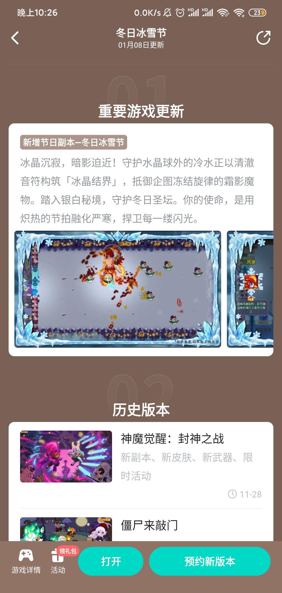 〓更新时间〓预计2025年12月31日11:00左右〓更新方式〓闪断更新提示:服务器闪断时,正在主城的玩家会进行短暂的重连,闪断前在联机副本内大退的玩家将无法重新连接到游戏中,正在副本内的玩家不受影响,请大家尽量避免在这个时间段进行相关的游戏操作,由此造成的不便我们深表歉意。〓更新内容〓一、内容新增1.新增卡牌魔盒一键升星功能。二、局内调整及修复1.优化了部分场景;2.修复了b