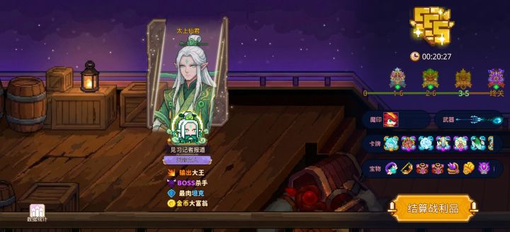 第一关:开局后地图的四个角落会刷新出怪,把怪打死会掉落史诗石板任意选择史诗卡牌以及在地图的右上角会有一个类似于悬浮的灯台,击碎后会掉落传说石板可选择传说卡牌困难图1-1里的传说石板能随机出任何史诗以及传说种类的卡牌,想要极限赌卡的朋友不要错过与观星长老-真玄对话,对话中的无妨是随机灵根,灵药修复则是可选择灵根(当然也是概率选择)然后是与占星圣子-太清切磋(左上角那个白毛)将其击败之后会给