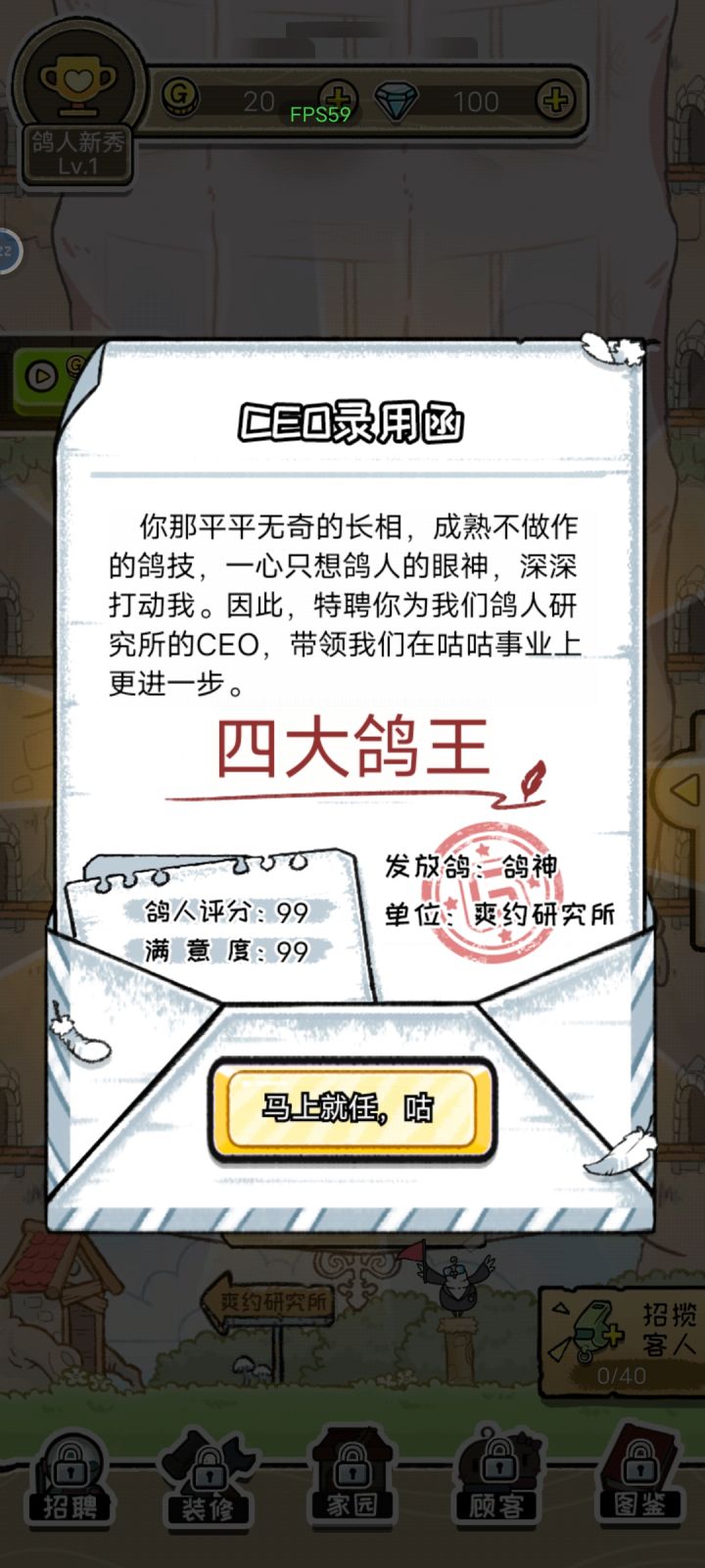 官方子晨 : 感谢体验,说实话鸽子这个题材国外可能并不好理解,所以会针对国内来做的~