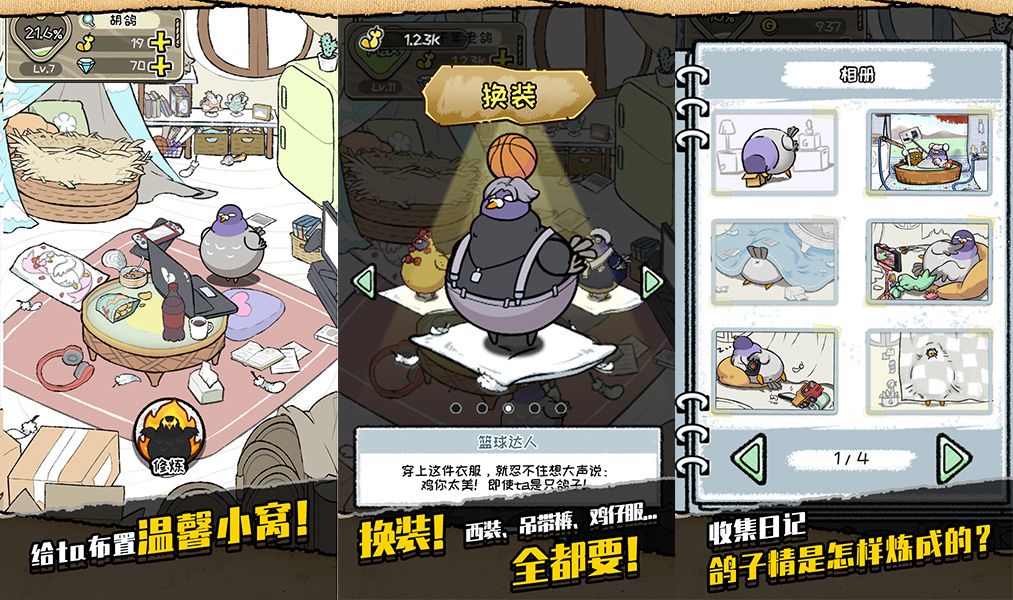1.二测版本有10层鸽房2.家园系统:1)领养一只鸽子,给Ta布置一个温馨的肥宅快乐窝!撸它(好感度↑)、升级家具能提升小鸽子“能力”噢~(钻石的产出以及存储上限)2)在家园左下角的宝箱里收钻石,每半小时可领取一次奖励(暂时,后续会优化)3)拍照改成修炼,不需要花费任何道具,小鸽子结束修炼回来后会给你Ta修炼获得的鸽人灵感照片!4)解锁家具、皮肤后,修炼能获得相关的照片~如解锁了篮球装后