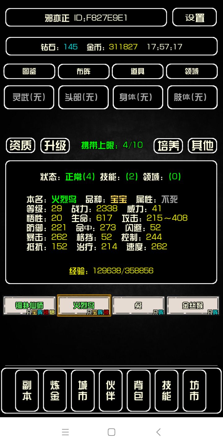 攻略是基于标题日期版本,刚到通第一座城市写的,后面更新或宠物到更高阶级可能有些不准。==============================================开局号可生成3个档,如都不满意可尝试生成新档手机换档1.4版本和1.5版本各有3个档(双卡手机可尝试换主号试试)模拟器换档不可多开的模拟器可重装模拟器或与手机一样操作可多开模拟器多开即可==========