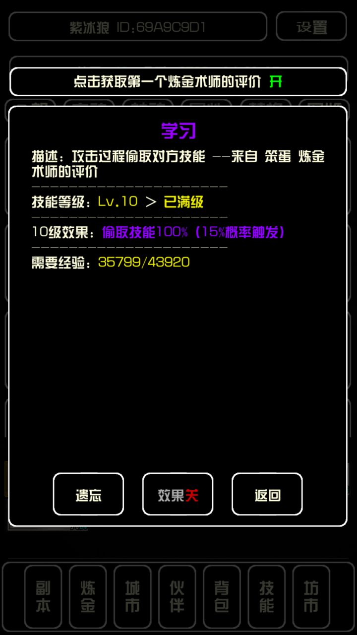 打架就能学习怪物技能!可惜开始测试学习个废物技能,好在神技就是神技。飞行+10%被动闪避,好有主动运用。另外一个是群攻技能,也是极为好用的。以后怎么样还不知道,但初期绝对神技无疑~