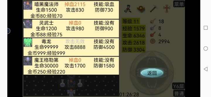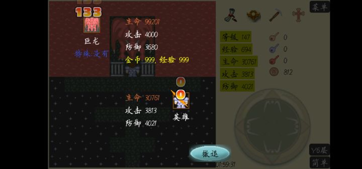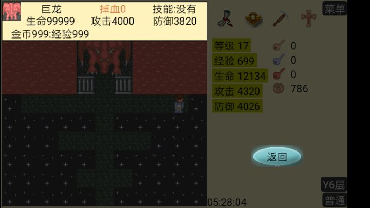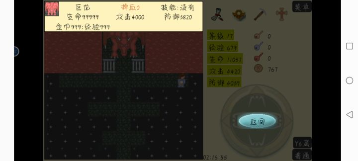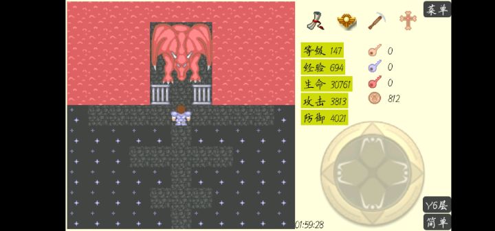 简单模式,从头到尾金币不买血,经验值换完+3等级,剩下的换+1等级。把剩余的钥匙全卖,用身上所得的金币加攻击达到3680以上一点,剩下的全部加防御达到4000多一点就行,金币还剩的话就加攻击加到加不了为止。如下图所示。再简单提一下,之前打魔王也是先把防御提升到1700多一点就行,然后攻击加到1500以上。按本人打的一般1500多一点,所以30000血打下来要挺久的。 虽然打两者的时间比较长,但是无伤取胜,很稳。