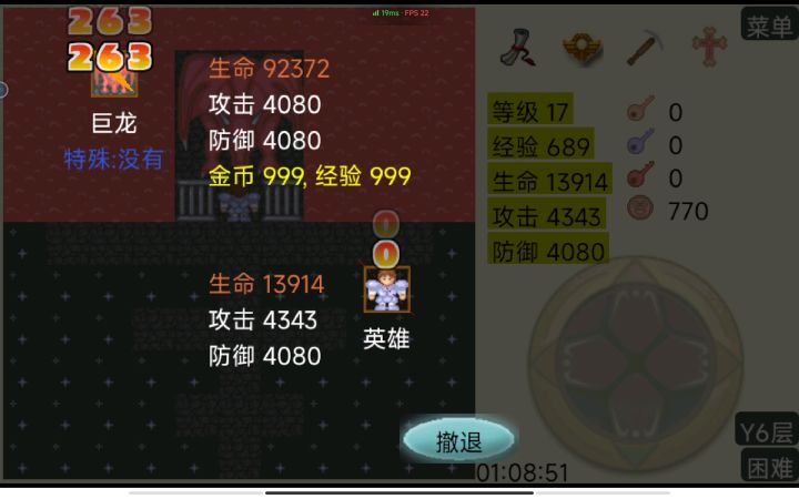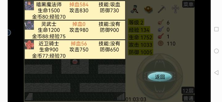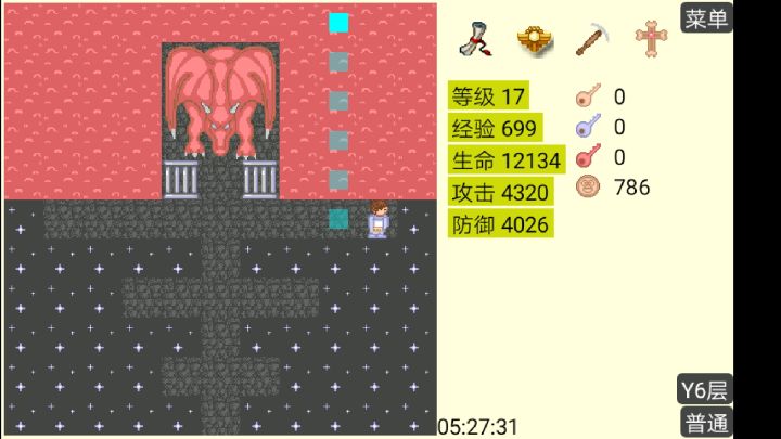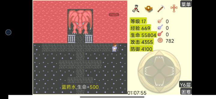中等模式。不会开章鱼史莱姆和一层的石头怪。有时会卡对话bug,重启就行了。我也没明白为什么这个近卫骑士打我会掉血。对比玩过的另一个魔塔:打完17红魔王和21层boss后,暗黑魔法师、灵武士和十字头盔并没有提升属性和金钱经验;并不用给小天使十字架就能找到21升22的楼梯口(上去了就交不了十字架了)。