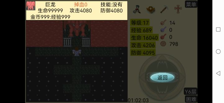 打的普通模式,一次性无损通关,感觉还是有运气成分,因为不知道大boss数据,进去的时候发现防御有点低了,还好还可以升级。不过打了近20分钟才杀掉,人都快睡着了