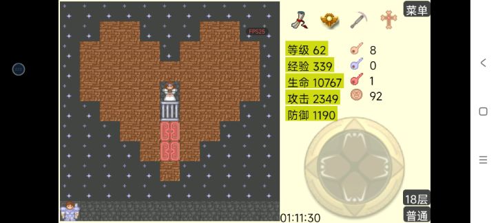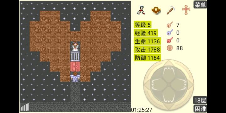 中等模式。不会开章鱼史莱姆和一层的石头怪。有时会卡对话bug,重启就行了。我也没明白为什么这个近卫骑士打我会掉血。对比玩过的另一个魔塔:打完17红魔王和21层boss后,暗黑魔法师、灵武士和十字头盔并没有提升属性和金钱经验;并不用给小天使十字架就能找到21升22的楼梯口(上去了就交不了十字架了)。