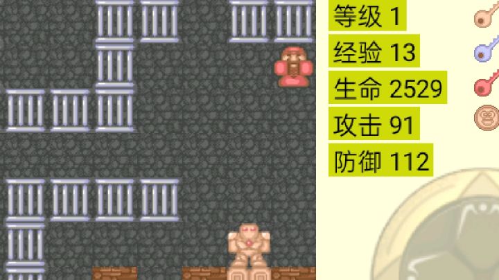 中等模式。不会开章鱼史莱姆和一层的石头怪。有时会卡对话bug,重启就行了。我也没明白为什么这个近卫骑士打我会掉血。对比玩过的另一个魔塔:打完17红魔王和21层boss后,暗黑魔法师、灵武士和十字头盔并没有提升属性和金钱经验;并不用给小天使十字架就能找到21升22的楼梯口(上去了就交不了十字架了)。