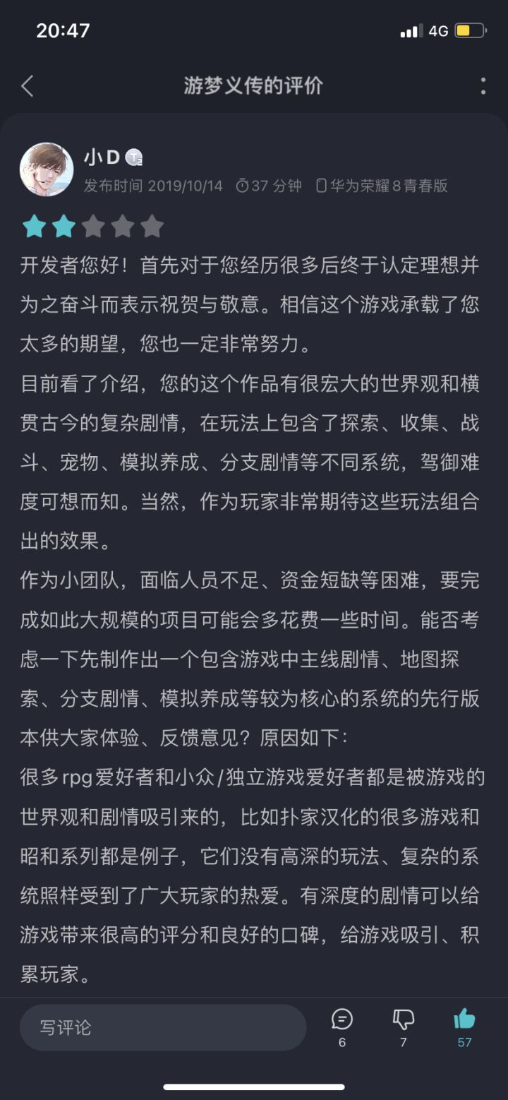 策划面对面:哈喽,朋友们大家好时隔三年,十分想念,我是小胜策划的上进心?小胜同学用三年时间完成了成人自考大专学历。小胜同学也成为了一名自媒体人。小胜同学跑步达到了363公里。策划去了哪里呢?小胜同学用三年时间,去沉淀新的游戏作品了。小胜很高兴能听取到了小D同学对游梦义传的这款国产单机游戏的真实客观评价,感谢您花了整整37分钟来体验这款游戏。