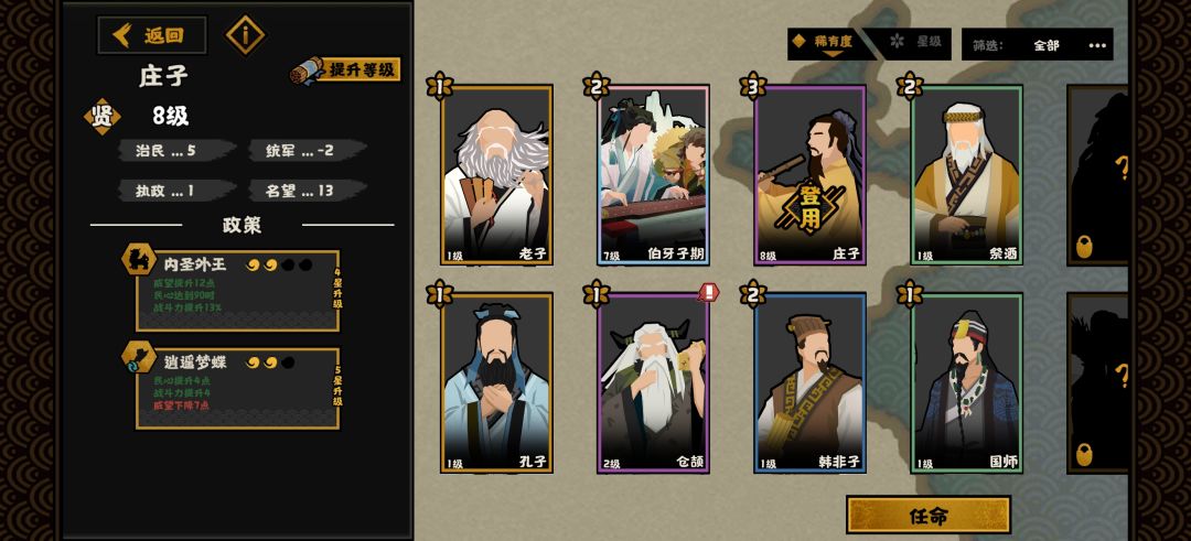 温馨提示:在使用攻略前可以点一个免费的关注哦 可以将本帖收藏,会实时进行更新。 声明:未经过本人同意的情况下进行搬运与改动属于违法行为,本人依法保留追责与索要赔偿权利。 新手专题 名臣专题:攻略流派玩法专题: 三皇五帝剧本详细讲解: 夏商周剧本详解: 秦楚汉剧本详解: