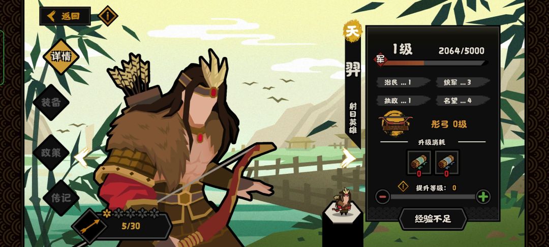 一、新手入坑 暑假大学牲,7.12入坑,tap上找的,第一天玩了起码8小时,当天就氪金了,一是这种策略类玩法以前接触的少,觉得很好玩,二是历史类很合我胃口,游戏细节是有的。 新手引导跳过了,以我玩游戏的经验看来,玩着玩着就会了,引导不重要……两个字,后悔。三皇五帝勉强拿下,夏商周更是打了将近一整天,第一次还只有两颗星。 游戏内也有教程,补基础知识,非常有用,像民心、军心、腐化、威望的作用,移动、驻