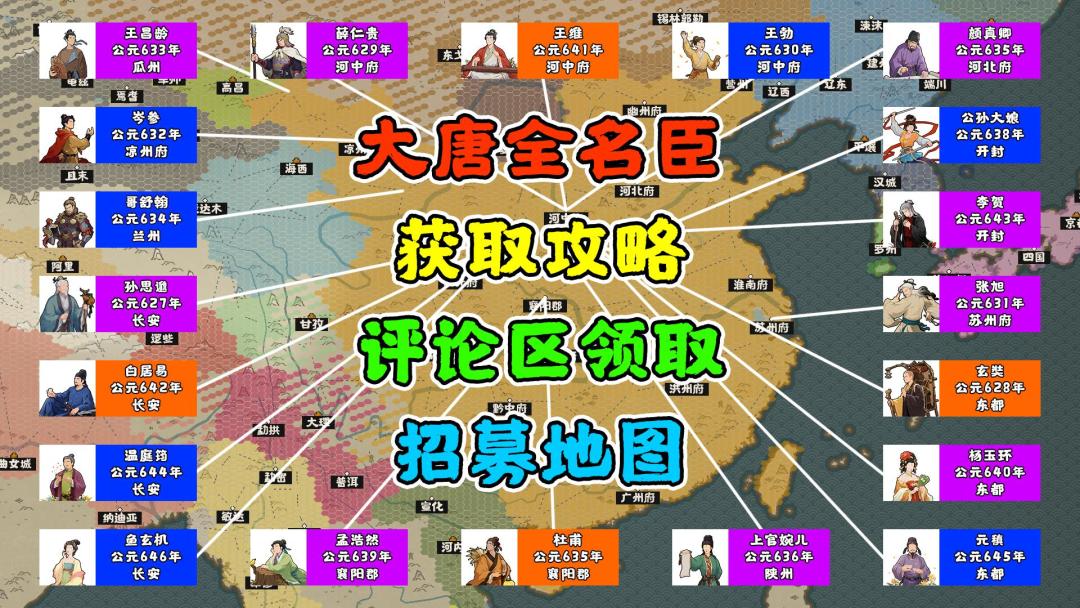 【无悔华夏】大唐全名臣获取攻略~内含名臣招募地图