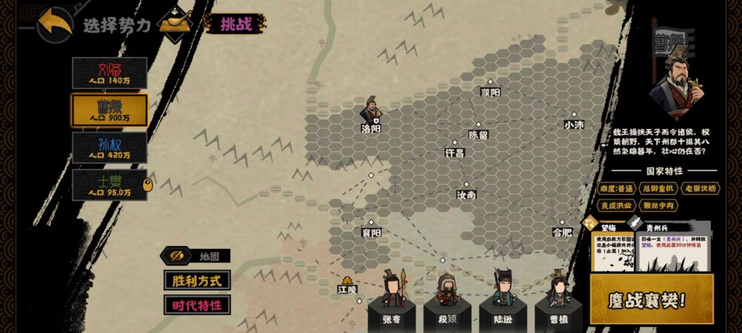 这个本,挑战模式是真的很简单了,我陆逊吕蒙已经刷出来胚子了,走结盟流那ai就不会进攻你(至少我没遇到被破盟攻击的情况) 唯一的问题就是这个本产量非常迷惑,动不动上亿,是真的搞不懂… 带(霍光)神中神 军事(吕蒙可刷满) 民/政(只能一个满,除非你舍得用道具) 一般我把政(陆逊)刷满 贤者(直接放弃)拿低保4片 吴开局,先看系统播报,确认你要sl的名臣在哪个国家,最好是士啥那个国家,最弱,没有想要的