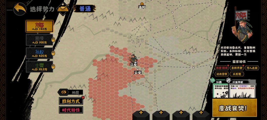 第一阶段非常容易,宛城就是白城。打一次关羽胜利,多点一些军事政策再打。 第二阶段开局要打赢关羽。 其他两个都很简单。 第三阶段开局有一个战斗 九品中正在这里。 然后又是分歧 幻想第四阶段: 建安文学在这里 第五阶段把关羽灭了,占孙权江夏 然后就没了 史实: 第四阶段直接结局 #攻略 #无悔华夏 #无悔华夏手游 #游戏安利