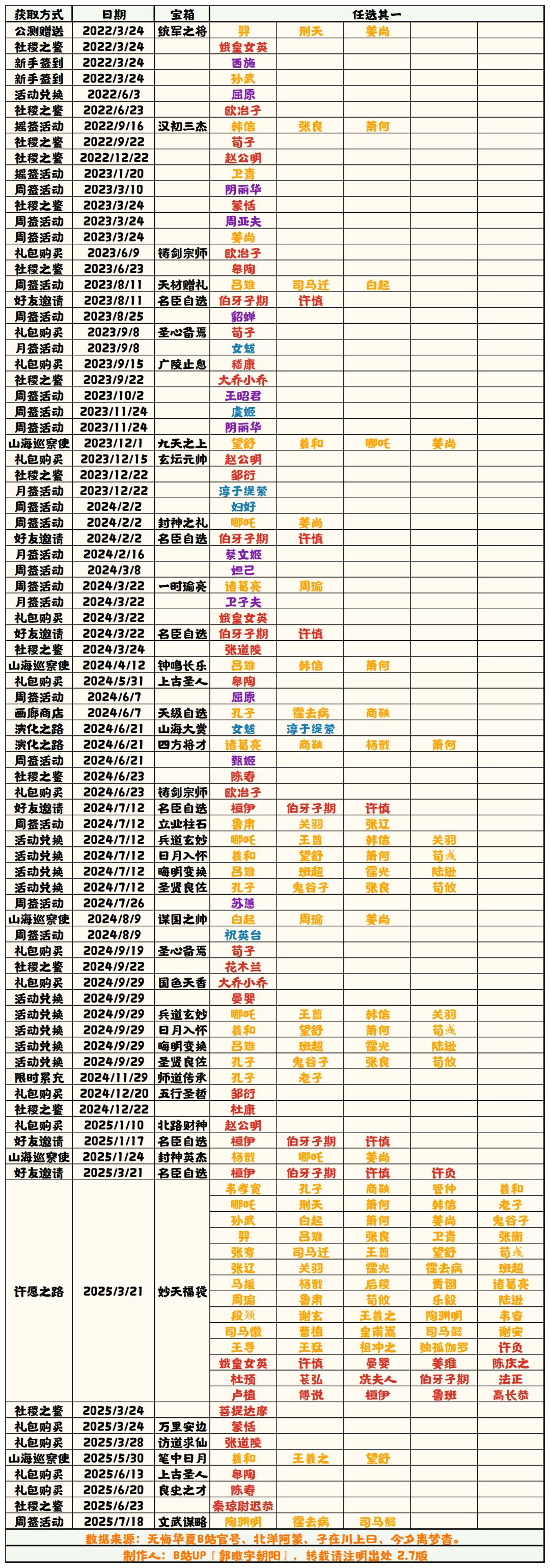 【无悔华夏】名臣获取补充表 2.7