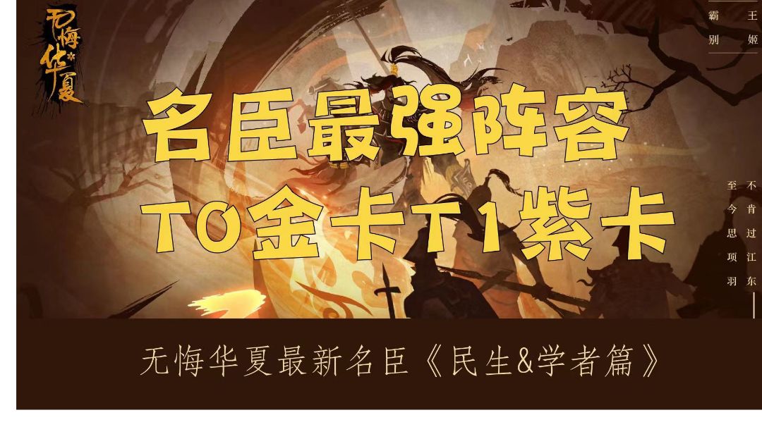 #此生无悔,魂入华夏#无悔华夏名臣最强阵容T0金卡T1紫卡推荐《民生&学者篇》
