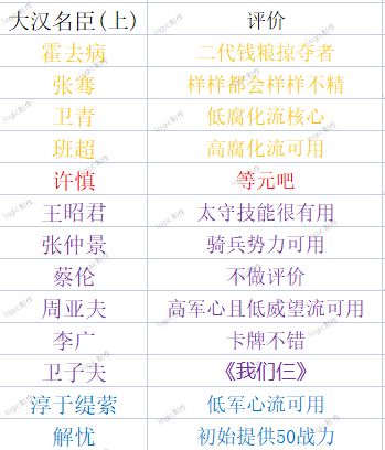 今天带来的是大汉名臣的评价上篇,个人感觉整体质量不如秦楚汉名臣。另欢迎大家加入群聊827362947,讨论更多内容