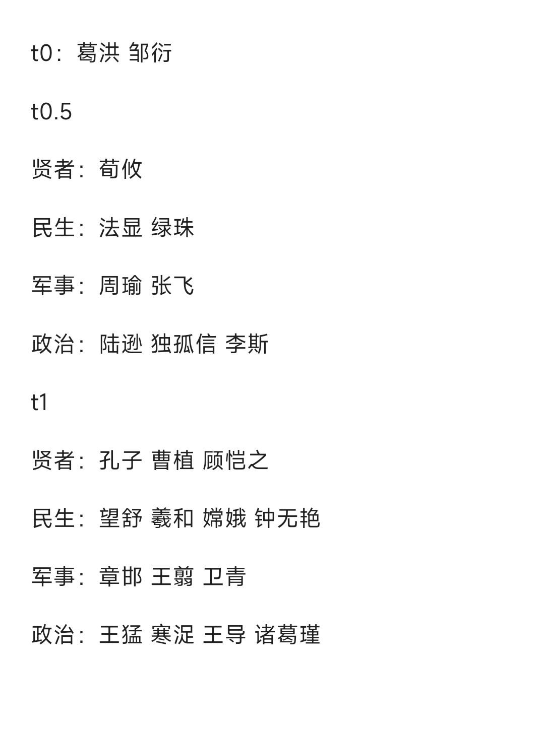 声明:此文章仅代表个人使用体验,参考了部分排榜,具体以个人使用体验和客观感受为准,并非树立权威,并非绝对正确的排榜,仅供参考。(使用体验均是在无落玉盘的情况下考虑,如果你有落玉盘,望舒的位置可以放在民生t0.5第一位,否则t1) 大家好,今天酉告来出一期新的名臣梯度排行喽!详情看图哦,具体解释如下: 一、t0级是所有名臣中最杰出的且最稳定的,只有葛洪和邹衍夺得桂冠,分别代表战斗系和发展系的巅峰