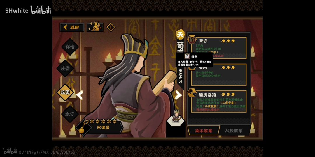 写在前面:其实觉得不应该这么早去写,毕竟有的名臣我自己都没肝满(咸鱼一天四个12片要比较久~),但是鲁肃不一样,鲁肃我抽满了~并且也实战过好几局了。虽然说理解不一定完全正确(不过已经叠甲欢迎探讨了不是吗…笑) 顺带一提,现在【无悔营地】更新了三国名臣政策的评价语,类似底下的督邮对于鲁肃明于事势的评价,所以也欢迎使用微信小程序【无悔营地】来进行查询~ 一.剧本政策 ①榻上策 鲁肃的核心政策,甚至可以