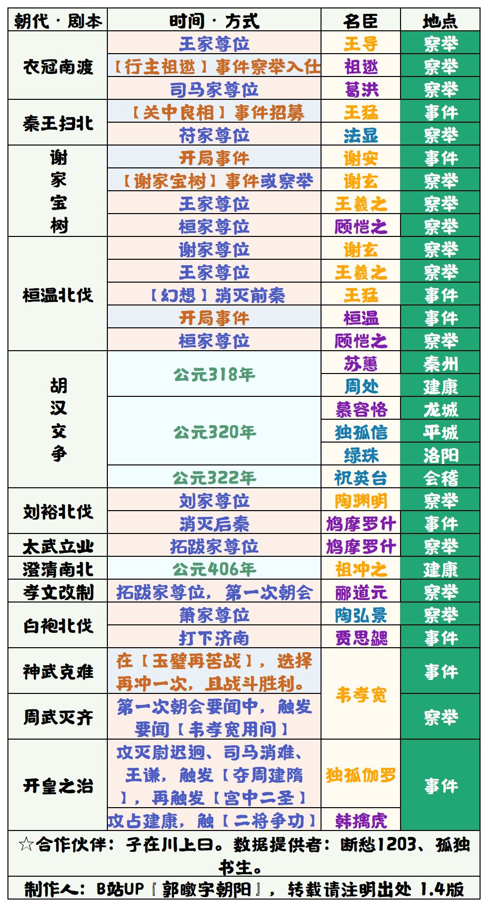 【无悔华夏】魏晋南北朝剧本名臣招募表 1.4