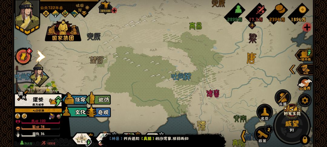 写在前面:各位王上好呀,我是子在川上曰。今天带来的是大唐剧本大唐势力的开荒指南,希望能够帮助各位王上轻松获得全部结局。 一、剧本新玩法与目标讲解 本次剧本引入了国家集团、妙笔生花、奇观三大全新玩法,我们将根据不同结局势力结局可能会涉及到的玩法,来进行简单说明,方便王上尽快上手剧本。(详细的玩法讲解,各位可以观看官方发布的讲解文章) 国家集团玩法:国家集团是由宗主国与附属国共同组成,每个附属国会