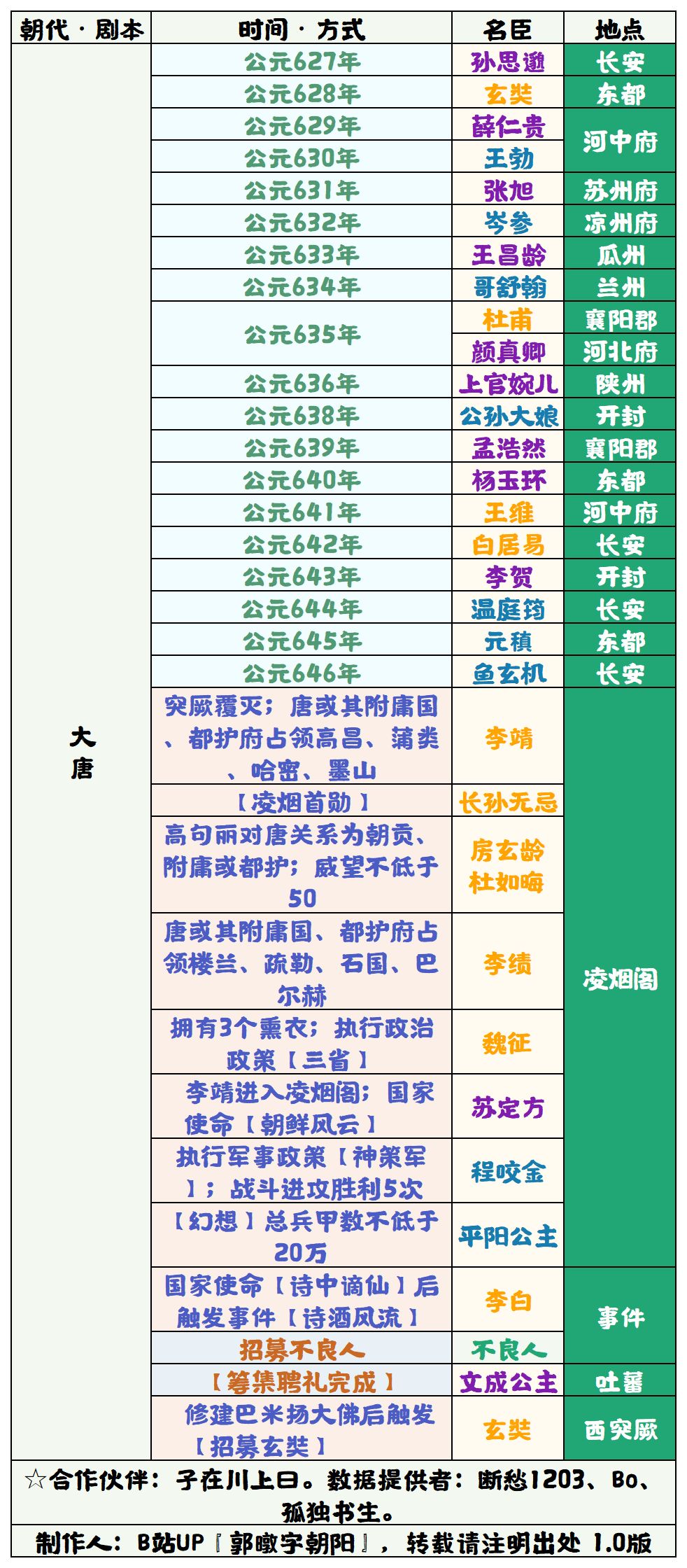 【无悔攻略】大唐名臣招募表