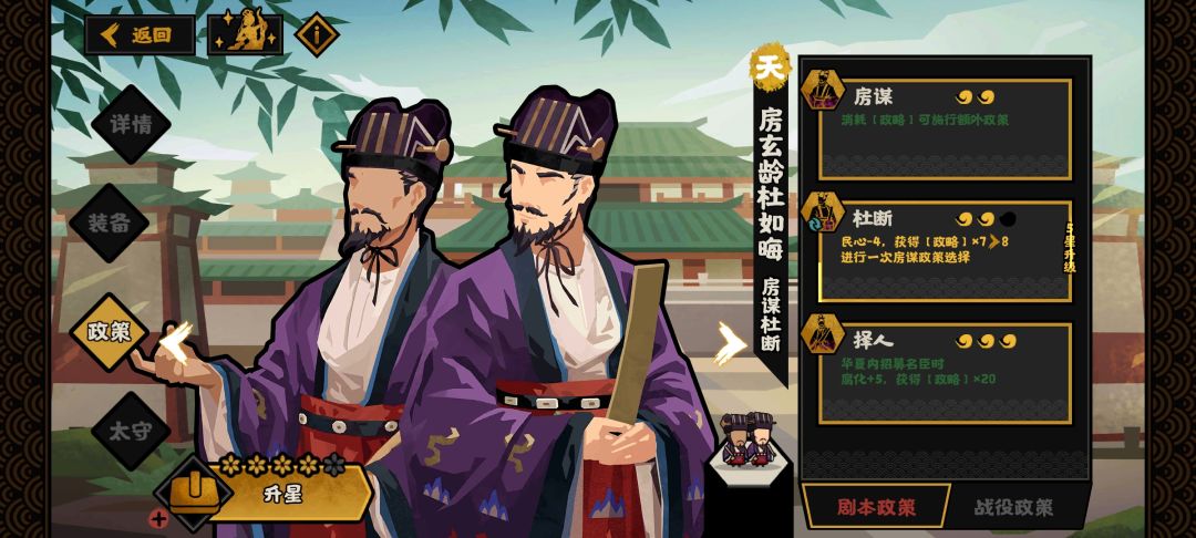 当初诸葛做成这强度还有这么多节奏吗? 左边: 8攻占进度,20%钱粮,10威望(34政略),每年给10发展(荀子) 中间: 2士子(孔子士子产量提升),2科技,4用间。(18政略) 右边: 70战力,10规模(31政略),摸牌(诸葛恪),洞悉(周亚夫) 你要16点攻占进度就点亮左边,要打架强就点亮右边,还给一堆的兵法(效果相当于诸葛恪,赵云,杨戬)。 后期就无脑点亮中间,循环政策一次给13发展时间
