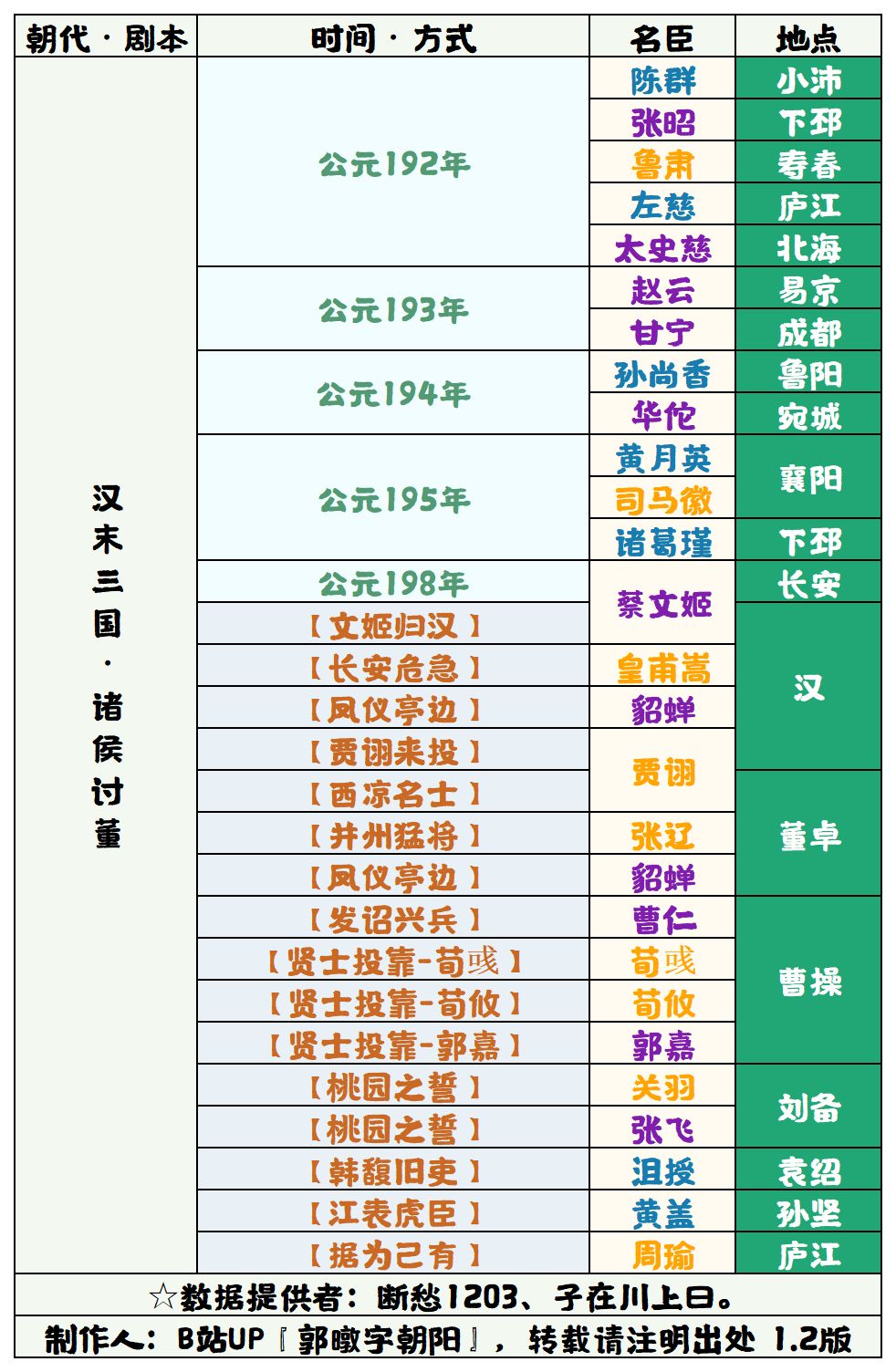 【无悔华夏】全剧本名臣招募表 4.1