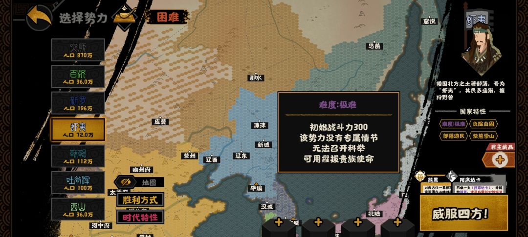 写在前面:各位王上好呀,我是子在川上曰。临近春节,提前祝大家新年快乐,今天带来的是魏晋南北朝剧本中神武克难剧本的开荒指南,希望能够帮助各位王上轻松获得全部结局。 目录 ①剧本目标详解 ②开荒推荐名臣 ③开荒流程演示 ④结束语 ①剧本目标详解 本次剧本分为主要目标与次要目标,完成主要目标且未完成所有次要目标,或达成史实结局,则可进入普通结局;在普通难度以上,完成主要目标且同时完成所有的次