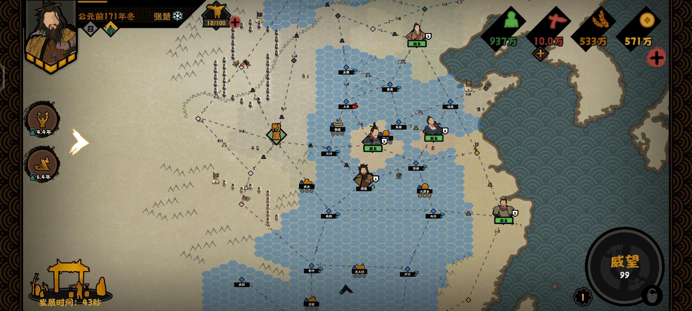 大佬们,这是什么情况?秦是我的藩属国,其他国家都是我的盟友,为什么达成不了诸侯咸服结局?而且我威望满了(图上是99,在游戏里已经满了),为什么没有会盟?#无悔华夏