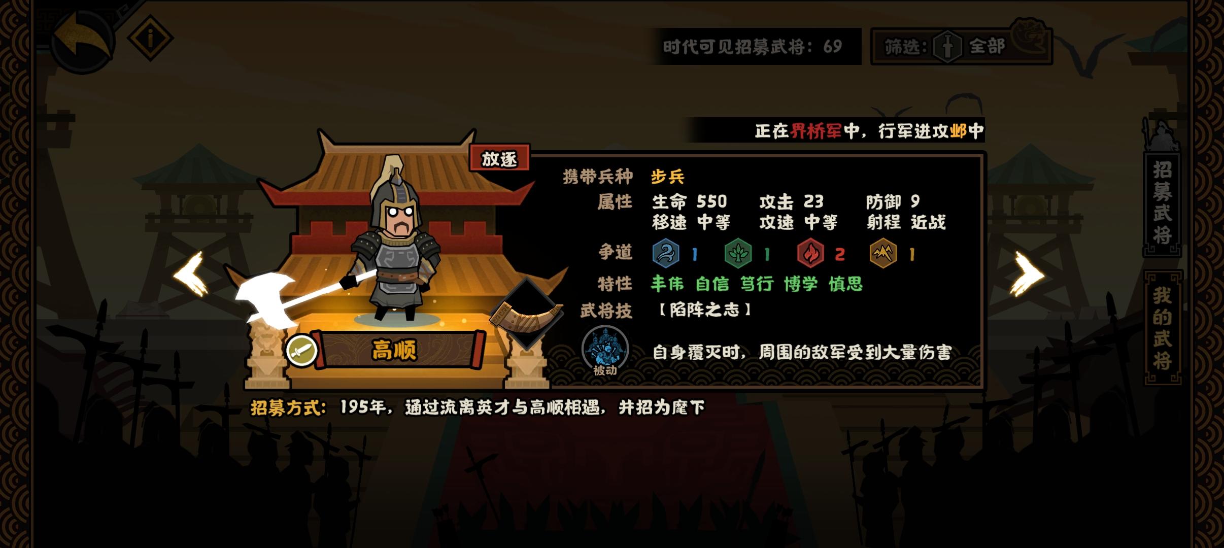 思路:1.主公兵给完加成就给吕后卖掉2.依靠孔子和吕后达成开局40%格挡20%攻击3.用羲和发育造三个60%格档的盾兵,搭配死士反扑#浅评一下