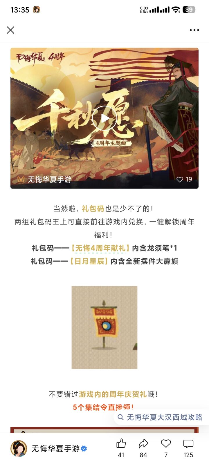 4周年庆礼包码