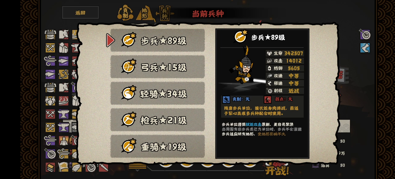 前两天推出了“河西归唐”战役,刚开始我玩的很揪心,动不动就失败了,后来看了些攻略,通关后略有所得,现在分享给大家,希望新手期的你不迷茫(高手看不看都行) 【一】 首先我的玩法主推的两个战术是“王牌军团”和“精英”,这两个政策都不是某名臣的所以新手有机会刷到 主要机制:这两个配合起来的益处就是你每打一场仗就可以升一个兵种的级,然后你的战斗力就加2%,新手五谷丰登的话一般战力略高,虽然损失很多兵