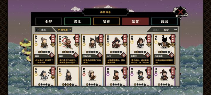 我主要有这些名臣,主要打打剧本,不打挑战难度的,这能有什么好一点的配队么