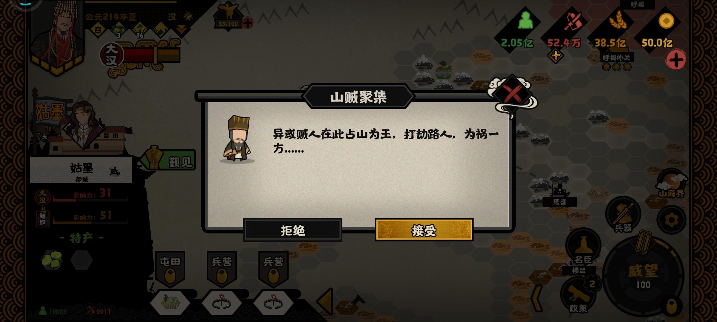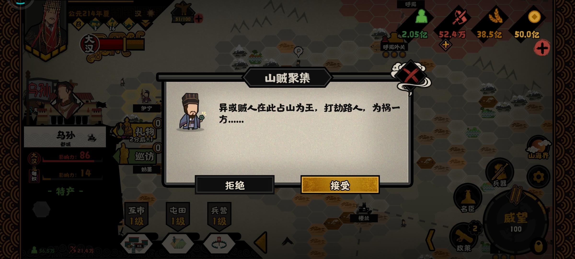大汉剧本,西域有些藏品还没获得,但是每次巡访,结果都是山贼聚集。开始以为是影响力低的原因,可是我看影响力都90或95了,结果仍然这样。哪位大佬知道什么原因吗?另外张骞察举有没有什么隐形条件,成功率太低了。