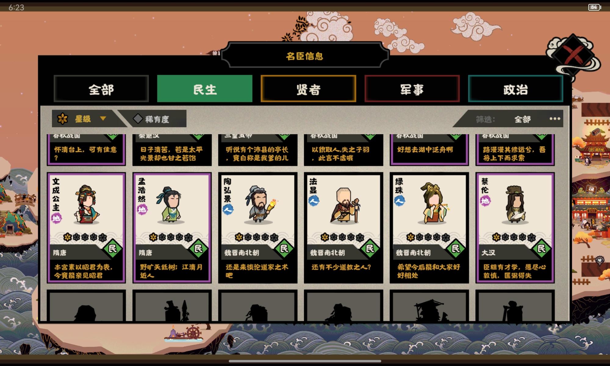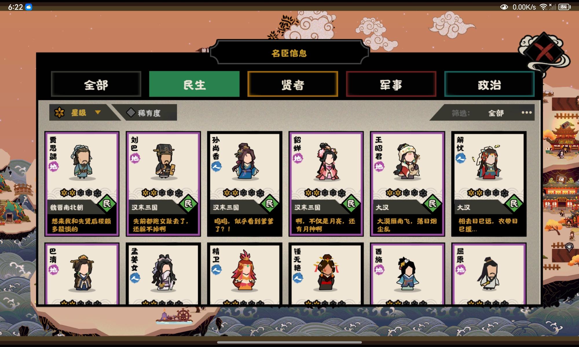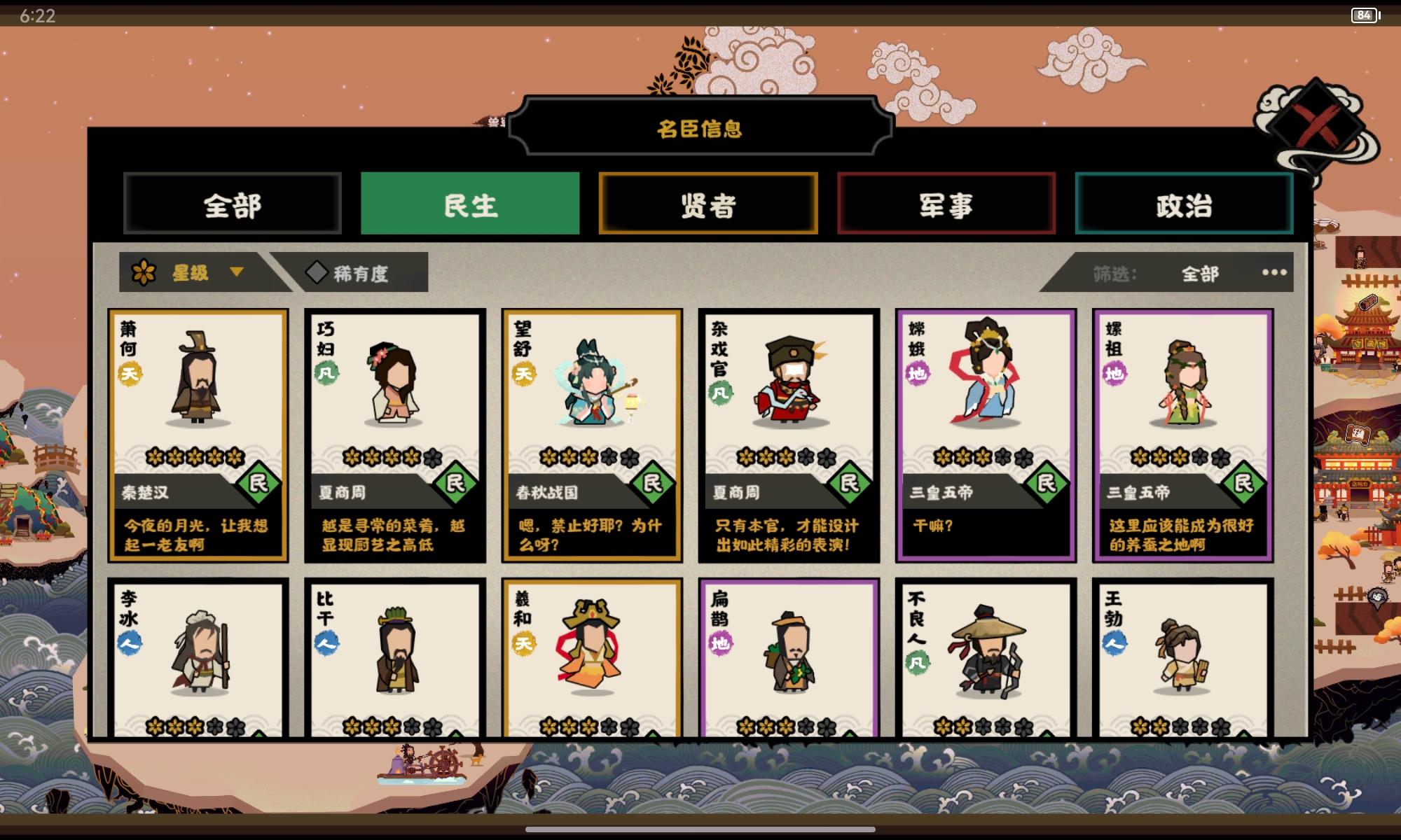 写在前面:随着6号安史之乱的上线,又有一批全新名臣即将到来,目前只是基于官方公布的已知信息做一个简短的分析,不代表最终结论,详细抽取建议可等卡池上线零点。一、郭子仪【单骑退敌】:卡牌效果不好评价,看描述有种全屏大火球的感觉,如果伤害数值给的比较高,说不定可考虑搭配自身三政策,快速上手开局打出大量伤害。【宏才】:武将目前看来比较一般,不过半场强行倒戈加上溃逃的效果,也许与部分玩法搭配有奇效。至