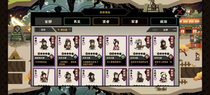 写在前面:3月20号新时代剧本五代十国就要上线了,就着今天官方公布的名臣政策,做一个前瞻分析~一、冯道【安民保业】:能够补充一定能够繁荣度并开启对应玩法,本次五代十国新名臣,拥有全新的繁荣度机制玩法,会根据繁荣度获得一定基础数值的加成,同时部分名臣也会根据繁荣度的数值,触发政策的额外效果。 【不倒翁】:同为繁荣度机制特殊玩法,每次获得危机后,会降低对应数值的繁荣度,若繁荣度降到0,则会触发一