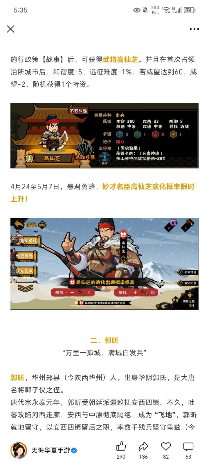 被一些视频激起了兴趣,想回来玩玩算是老玩家吧。秦汉楚的时候退坑的,当时退坑的原因就是觉得游戏太无聊了,之前总结的一些槽点1.游戏时间和游戏体验成急剧反比,半小时,之后每过半小时,游戏体验急剧下降,玩得越少越好玩,上线时间越多越不值得2.入坑就是喜欢听历史故事,玩下去是因为他真的给我讲故事,不过看得多了之后,感觉游戏内的表现力有点平庸,而且见识增长之后,感觉讲的故事实在太浅了,于是就改为看更高