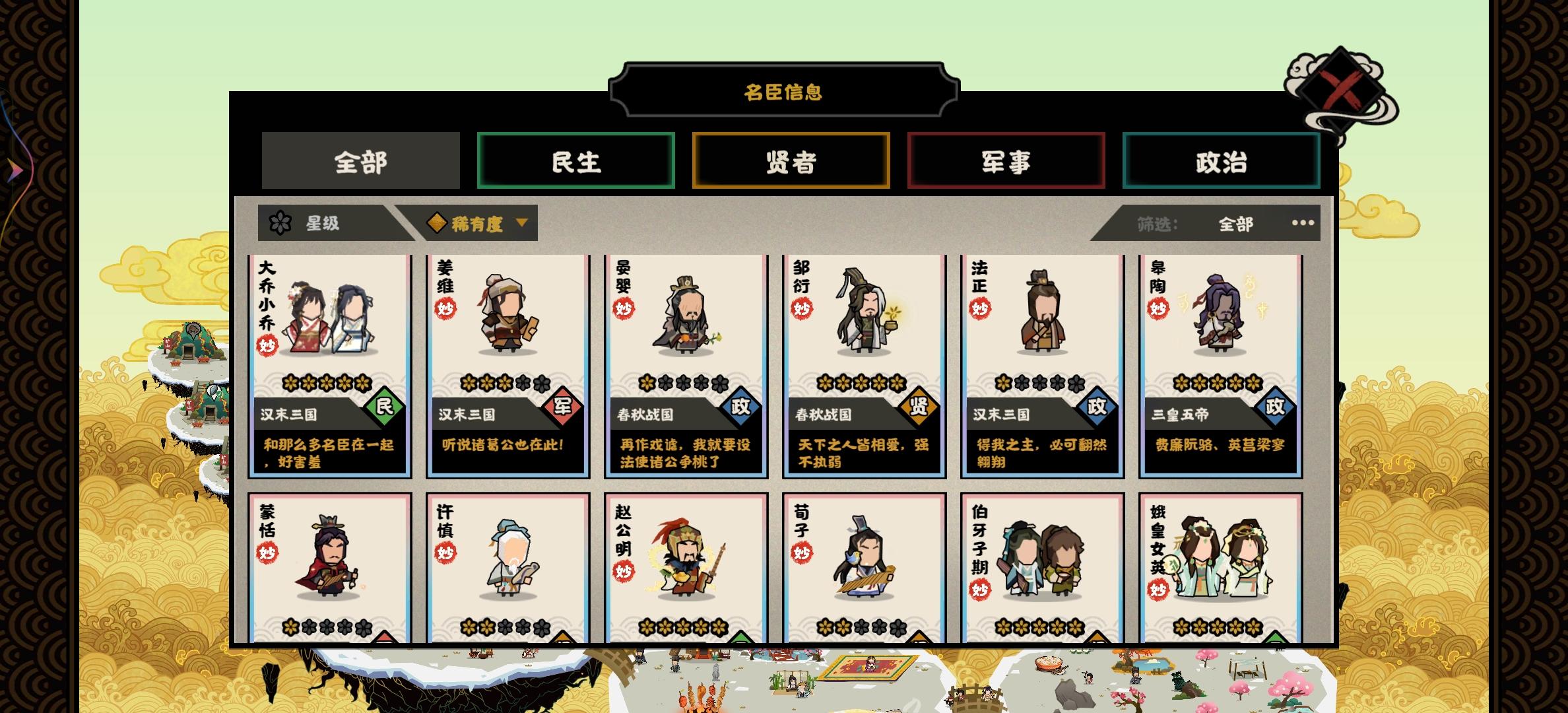 无悔华夏这么多年来终于出现了无限叠科技的名臣,今天吴道子爆料的时候我就想到了,我游唯一一个名臣自带循环加科技的就是邓绥,但是有文化限制,现在吴道子可以无限加文化,绝配!