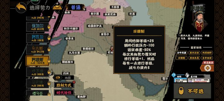 写在前面:各位王上好,我是子在川上曰。今天带来的是安史之乱剧本安禄山的开荒指南,希望能够帮助各位王上轻松获得全部结局。 一、剧本新玩法与目标讲解本次剧本沿用并丰富了大唐主剧本的国家集团玩法,接下来我会简单介绍一下本次新增玩法,详细讲解则会在开荒指南中。在国家信息中,新增了行政压力这一属性,行政压力主要起到制约作用,随着领土面积的扩大与不同文化势力的增多,行政压力也会随之上升,进而带来额外的