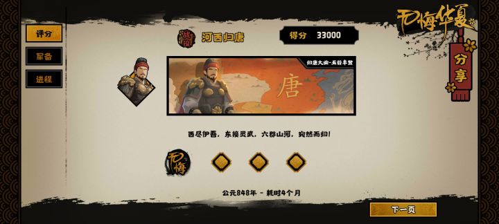 新人练度不明,核心名臣不多,无金武打起来绝对吃力,不信我和你赌。而且安史事件太随机,等个名臣事件等老半天,稳定点的就王维,李白。之后就是地图上的薛涛,裴行俭这些三国,魏晋,唐这些剧本正式进入战力膨胀期,战力单位从十到百,新人名臣不强打起来就是吃力,我建议是从三国开始打一些史实模式比你干安史强。安史机制太多了,你也不知道新人对游戏理解什么程度,可能连要地治所机制没弄明白,更别说什么国家集团,远
