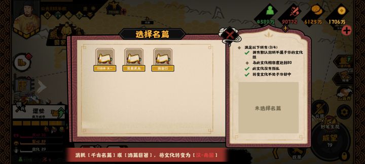 新人练度不明,核心名臣不多,无金武打起来绝对吃力,不信我和你赌。而且安史事件太随机,等个名臣事件等老半天,稳定点的就王维,李白。之后就是地图上的薛涛,裴行俭这些三国,魏晋,唐这些剧本正式进入战力膨胀期,战力单位从十到百,新人名臣不强打起来就是吃力,我建议是从三国开始打一些史实模式比你干安史强。安史机制太多了,你也不知道新人对游戏理解什么程度,可能连要地治所机制没弄明白,更别说什么国家集团,远