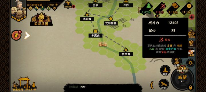 新人练度不明,核心名臣不多,无金武打起来绝对吃力,不信我和你赌。而且安史事件太随机,等个名臣事件等老半天,稳定点的就王维,李白。之后就是地图上的薛涛,裴行俭这些三国,魏晋,唐这些剧本正式进入战力膨胀期,战力单位从十到百,新人名臣不强打起来就是吃力,我建议是从三国开始打一些史实模式比你干安史强。安史机制太多了,你也不知道新人对游戏理解什么程度,可能连要地治所机制没弄明白,更别说什么国家集团,远