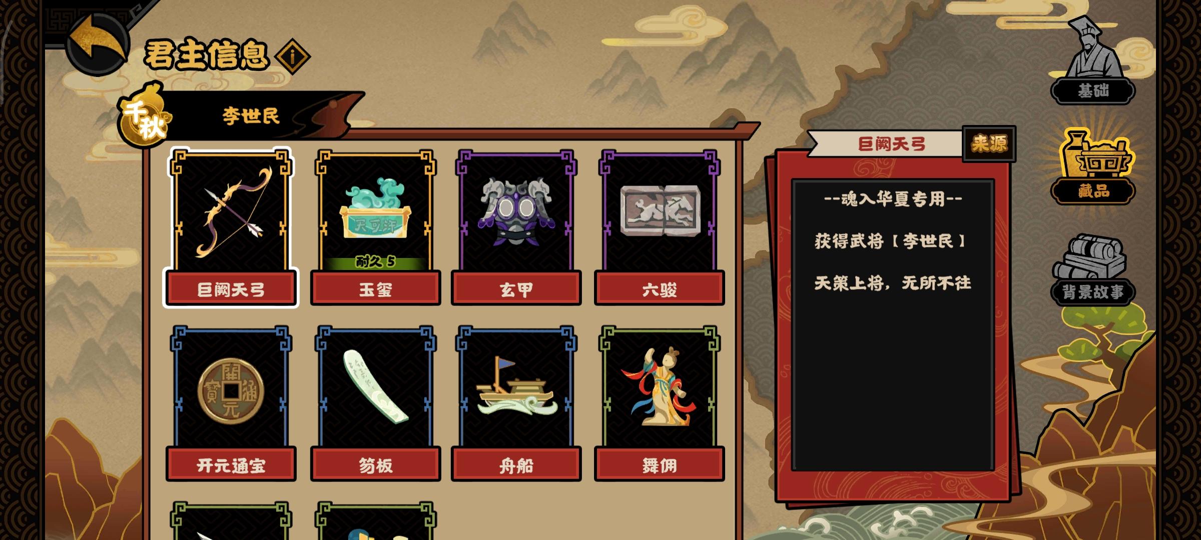 李世民搞定了,武则天也接近。武则天是真次啊,我看新出的刘秀也跟武差不多,那我也不太追求全图鉴了