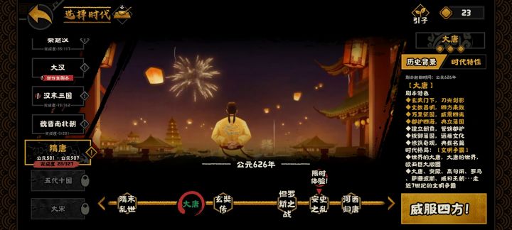 新人练度不明,核心名臣不多,无金武打起来绝对吃力,不信我和你赌。而且安史事件太随机,等个名臣事件等老半天,稳定点的就王维,李白。之后就是地图上的薛涛,裴行俭这些三国,魏晋,唐这些剧本正式进入战力膨胀期,战力单位从十到百,新人名臣不强打起来就是吃力,我建议是从三国开始打一些史实模式比你干安史强。安史机制太多了,你也不知道新人对游戏理解什么程度,可能连要地治所机制没弄明白,更别说什么国家集团,远